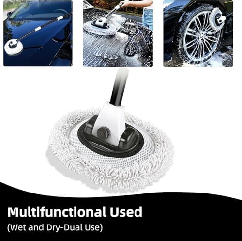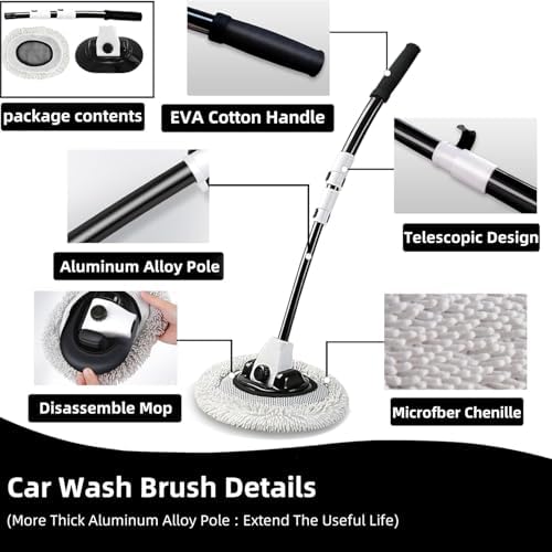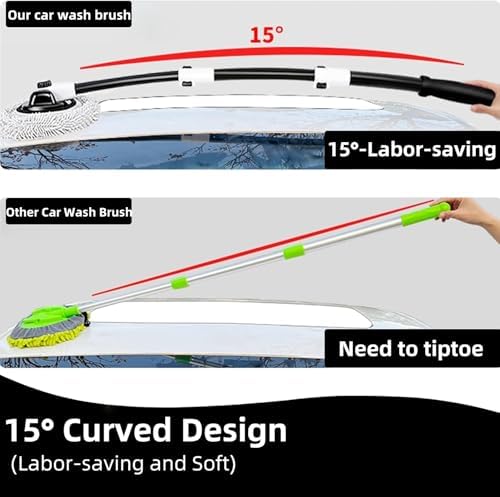 15° Curved Car Wash Brush with Long Handle 43" Microfiber Cleaning Mop Telescopic Extension Pole for Caravan RV Truck Auto SUV Wheel Boat Exterior 2 in 1 Carwash Duster Not Hurt Paint Scratch Free