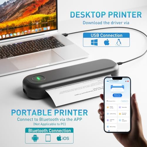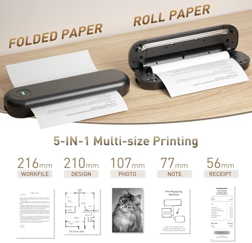 Bisofice A4 Portable Thermal Printer Wireless&USB Connect with Mobile Computer 50mm\/56mm\/77mm\/107mm\/210mm\/216mm(2in\/3in\/4in\/8in\/8.5in) US Letter A5 Paper Size for Office School