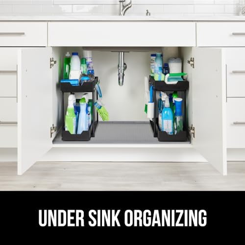 GORILLA GRIP Waterproof Silicone Under Sink Mat with Raised Lip for Kitchen and Bathroom, 34 x 22 in, Cabinet Shelf Liner Stay in Place Mats Dishwasher Safe Drawer Liner, Organizer Tray, Gray