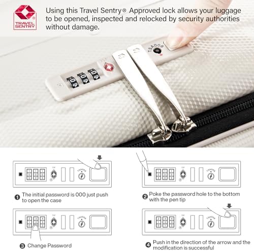 Hanke 20 Inch Carry On Luggage with Wheels PC Hard Shell Suitcase Top Opening Aluminum Frame Travel Luggage Suitcases for Woman Men Gifts.(Ivory White)