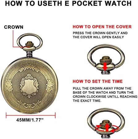 Realpoo Bronze Smooth Cover Roman Men's Quartz Pocket Watch, Black Roman Digital Dial with Chain