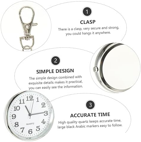 iplusmile Clip on Pocket Watch Open Face Watch with Key Buckle Portable Unisex Digital Watch for Students Men Doctor Nurses Women