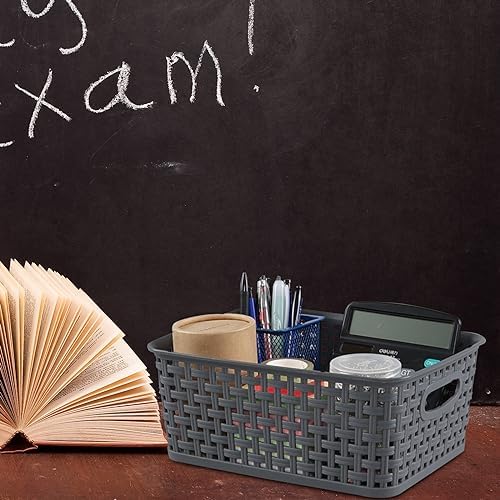 CadineUS 6-Pack Plastic Woven Storage Baskets, Small Baskets Dark grey