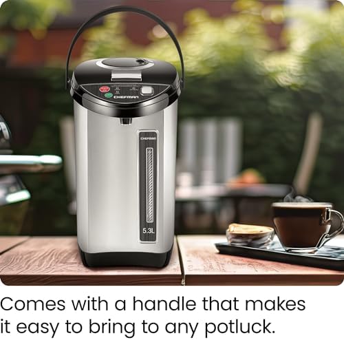 Chefman Electric Hot Water Pot Urn w\/Auto & Manual Dispense Buttons, Safety Lock, Instant Heating for Coffee & Tea, Auto-Shutoff & Boil Dry Protection, Insulated Stainless Steel, 3.6L\/3.