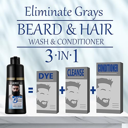 Men's Long-Lasting Black Hair Dye & Root Touch Up for Gray Coverage - 5 Minute Natural Beard & Mustache Coloring Shampoo 3-in-1