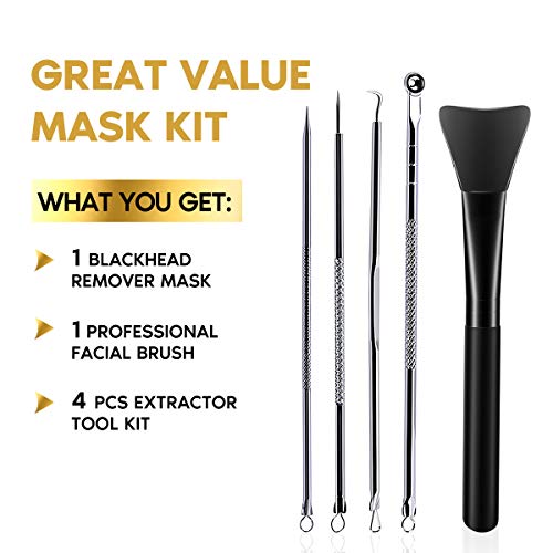 YLNALO Blackhead Remover Mask Kit, Charcoal Peel Off Facial Mask with Brush and Pimple Extractors, Deep Cleansing for Face Nose Blackhead Pores Acne, For All Skin Types (3.5 Fl.oz)