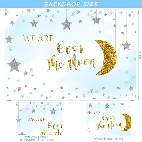 154 PCs Over The Moon Baby Shower Decorations, Fiesec We Are Over The Moon Baby Shower Decorations Backdrop Balloon Garland Glitter Banner Cake Cupcake Topper Boxes Cutout Starry Night Galaxy Sliver