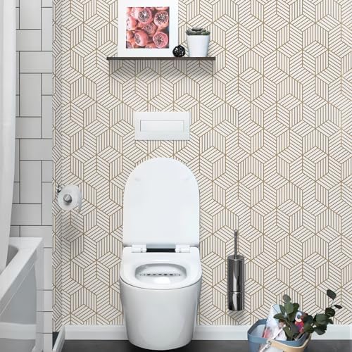WENMER 17.71" x 118" Geometric Hexagon Wallpaper Peel and Stick Wallpaper Removable Self Adhesive Wall Paper Vinyl Film Shelf Paper & Drawer Liner Roll for Home Use